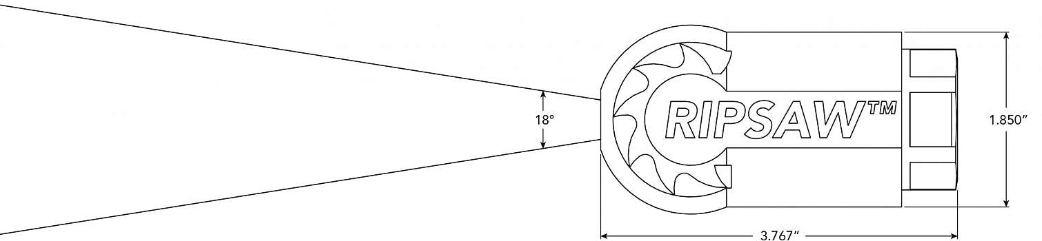 The Ripsaw HD blasts a 0-degree straight water stream at up to 3200 PSI while rotating at a high speed to provide an 18-degree cone of coverage. The cone-shaped flow pattern is ideally suited for potholing applications.